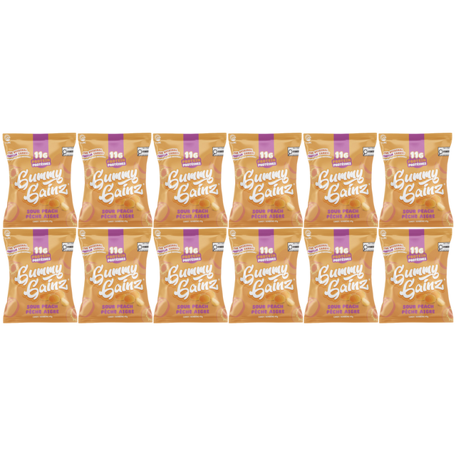 Gummy Gainz Protein Candy Fuzzy Peach (Box of 12) is backordered and will ship as soon as it is back in stock.